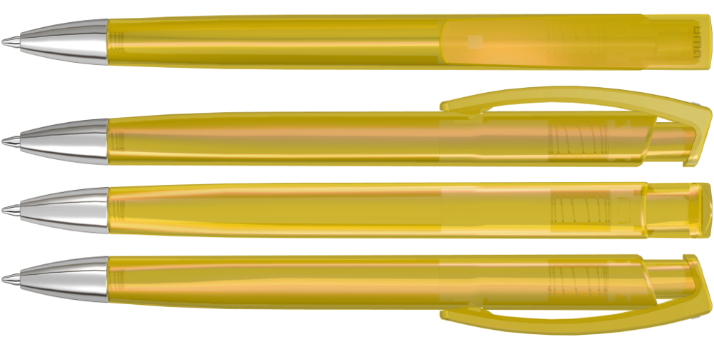 Druckkugelschreiber mit transparent glänzendem Dreikantgehäuse und schwerer Metallspitze... mehr