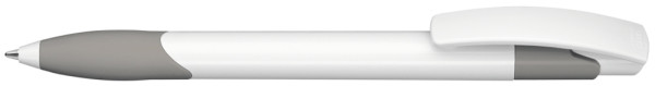 Druckkugelschreiber mit gedeckt glänzendem Schaft und Clipdrücker in weiß. Gummigriffzone und... mehr