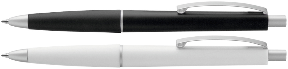 Druckkugelschreiber mit gedecktem Gehäuse, Gummigriffzone und geschwungenem Metallclip. Drücker,... mehr