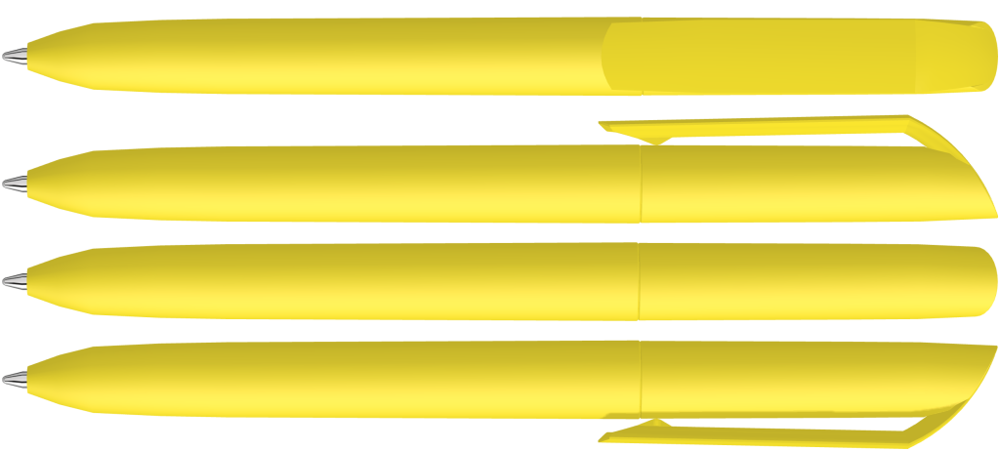 Drehkugelschreiber mit Softtouch-Gehäuse und gedeckt glänzendem Clip.