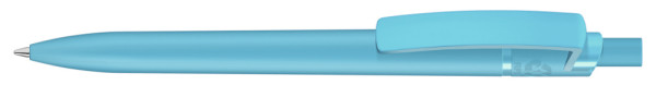 Druckkugelschreiber aus recyceltem PET-Material mit matt gedecktem Gehäuse, Clip und Drücker.