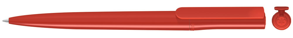 Drehkugelschreiber aus recyceltem PET-Material mit gedeckt glänzendem Gehäuse.