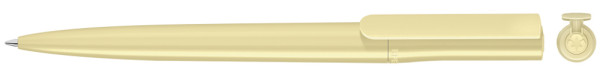 Drehkugelschreiber aus recyceltem PET-Material mit gedeckt glänzendem Gehäuse.