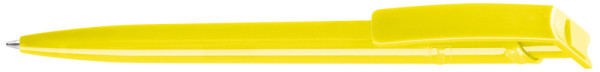 Druckkugelschreiber aus recyceltem PET-Material mit gedeckt glänzendem Gehäuse und Stopfen.
