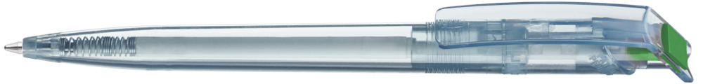 Druckkugelschreiber aus recyceltem PET-Material mit klar transparent glänzendem Gehäuse und... mehr