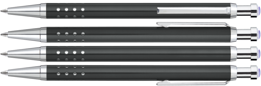Metall-Druckkugelschreiber lackiert mit gelochter Griffzone. Metallbeschlagteile glanzverchromt.... mehr