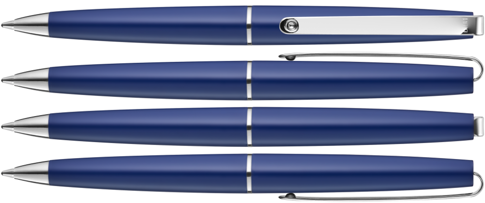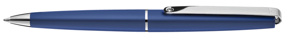 Metall-Drehkugelschreiber mit Softdrehmechanik und glänzendem Gehäuse. Langer flexibler Metallclip, Zierring und Spitze glanzverchromt.