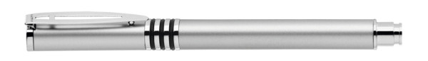 Metall-Rollerball mit glänzend lackiertem Aluminiumschaft und 3 eingelassenen, kombinierbaren Gummiringen. Metallbeschlagteile glanzverchromt.