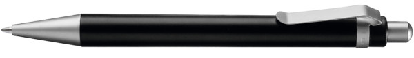 Druckkugelschreiber mit transparent gefrostetem oder gedecktem Gehäuse. Metalldrücker, Metallclip und Metallspitze matt verchromt.