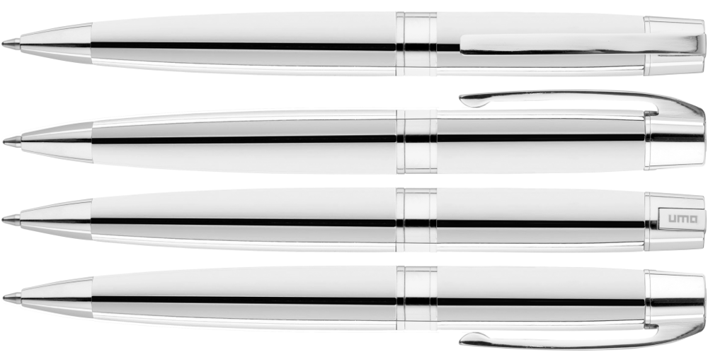 Metall-Drehkugelschreiber mit Softdrehmechanik und gefedertem Clip. Beschlagteile glanzverchromt.