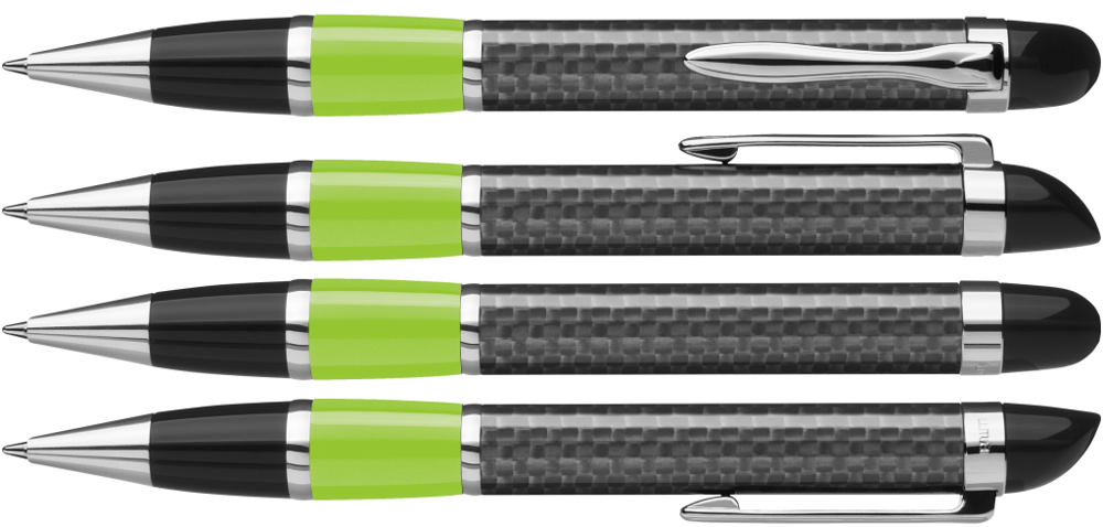 Edler Carbonfaser Metalldrehkugelschreiber mit farbiger Griffzone, flexiblem Metallclip,... mehr