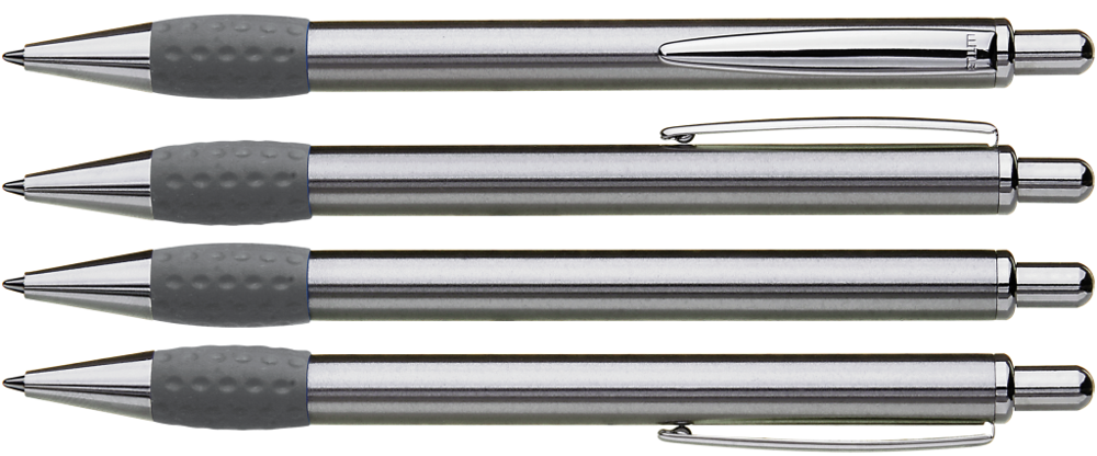 Metall-Druckkugelschreiber mit Schaft, Drücker, Clip und Spitze glanzverchromt. Gummigriffzone... mehr