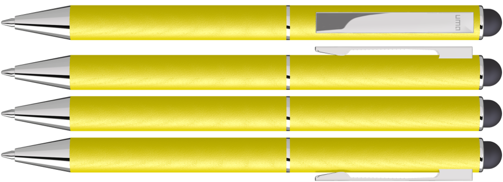 Metall-Drehkugelschreiber mit mattem Gehäuse. Metallclip und Metallspitze silber glänzend. Gummiertes Schaftende für die Touchscreensteuerung.