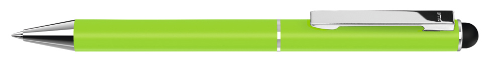 Metall-Drehkugelschreiber mit mattem Gehäuse. Metallclip und Metallspitze silber glänzend. Gummiertes Schaftende für die Touchscreensteuerung.