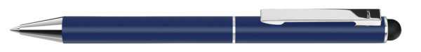 Metall-Drehkugelschreiber mit mattem Gehäuse. Metallclip und Metallspitze silber glänzend. Gummiertes Schaftende für die Touchscreensteuerung.