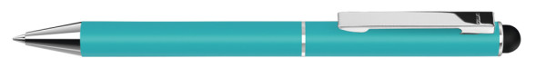 Metall-Drehkugelschreiber mit mattem Gehäuse. Metallclip und Metallspitze silber glänzend. Gummiertes Schaftende für die Touchscreensteuerung.