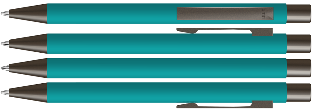 Metall-Druckkugelschreiber mit Softtouch-Gehäuse. Metallclip, Metallspitze und Drücker GUN metallic. mehr