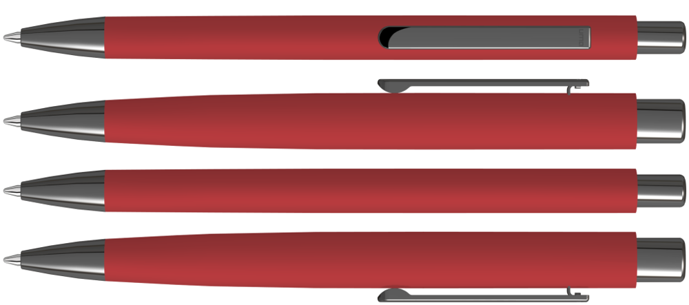 Metall-Druckkugelschreiber mit ellipsenförmigem Softtouch-Gehäuse. Metallclip, Metallspitze und ellipsenförmiger Drücker GUN metallic.