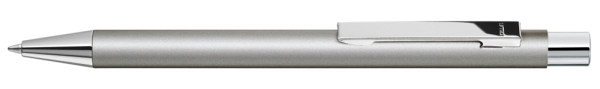 Metall-Druckkugelschreiber mit mattem Gehäuse. Metallclip, Metallspitze und Drücker silber glänzend. mehr