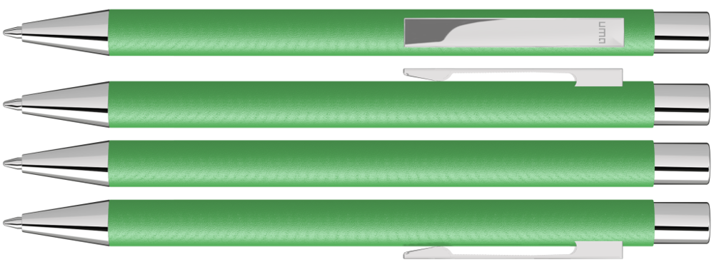 Metall-Druckkugelschreiber mit mattem Gehäuse. Metallclip, Metallspitze und Drücker silber glänzend. mehr