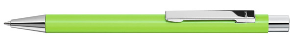 Metall-Druckkugelschreiber mit mattem Gehäuse. Metallclip, Metallspitze und Drücker silber glänzend. mehr