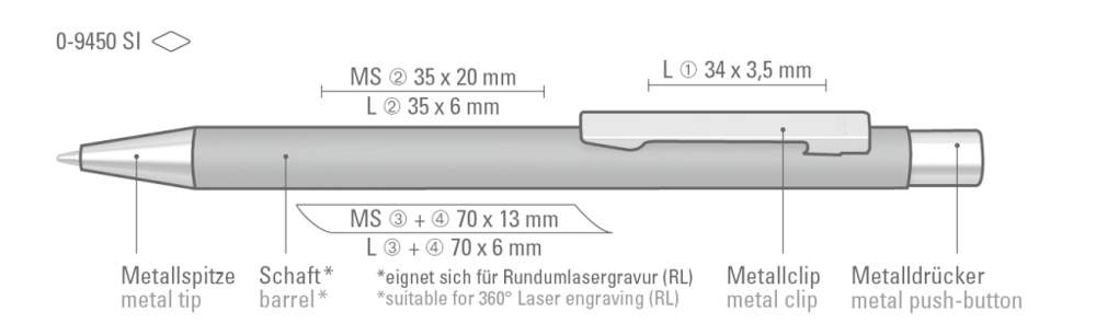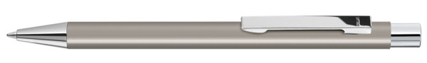 Metall-Druckkugelschreiber mit mattem Gehäuse. Metallclip, Metallspitze und Drücker silber glänzend. mehr
