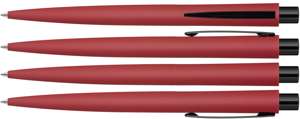 Metall-Druckkugelschreiber mit Softtouch-Gehäuse. Metallclip und Drücker schwarz glänzend. mehr