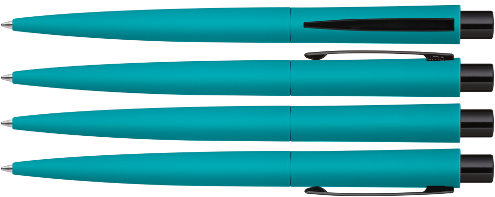Metall-Druckkugelschreiber mit Softtouch-Gehäuse. Metallclip und Drücker schwarz glänzend. mehr