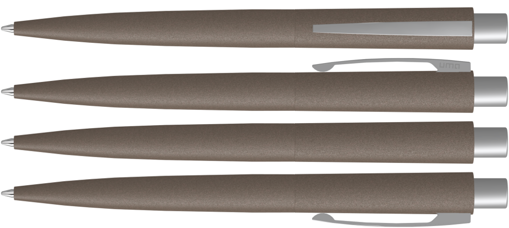 Metall-Druckkugelschreiber mit nachgestellter Beton- bzw. Steinoptik und Haptik. Metallclip und Drücker matt verchromt.