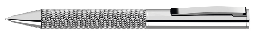 Metall-Drehkugelschreiber glänzend lackiert mit Softdrehmechanik und gefedertem Metallclip. Schaft mit integriertem Meshband.