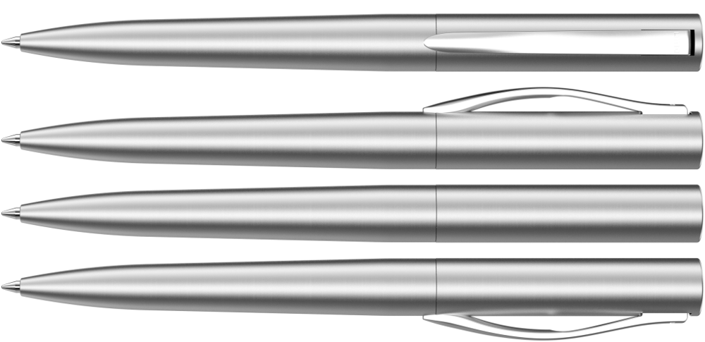 Metall-Drehkugelschreiber mit matt lackiertem Gehäuse, Softdrehmechanik und gefedertem, gebürstetem Clip.
