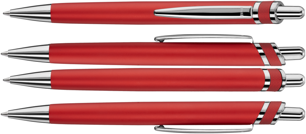 Metall-Druckkugelschreiber mit matt lackiertem Aluminiumschaft. Beschlagteile glanzverchromt.