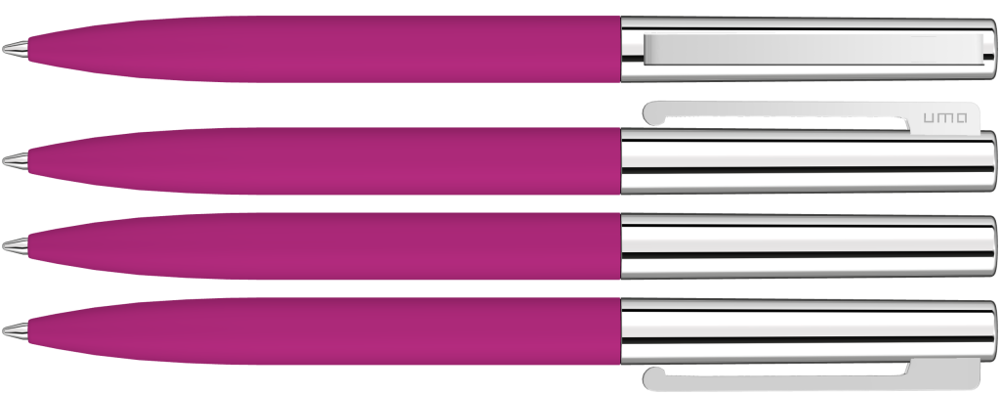 Metall-Drehkugelschreiber mit Softtouch-Schaft, glanzverchromtem Metalloberteil und gefederter Metallclip.