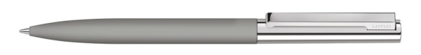 Metall-Drehkugelschreiber mit Softtouch-Schaft, glanzverchromtem Metalloberteil und gefederter Metallclip.