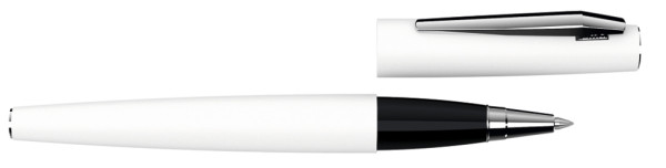 Metall-Rollerball mit matt lackiertem Gehäuse. Metallclip und Stopfen glanzverchromt.