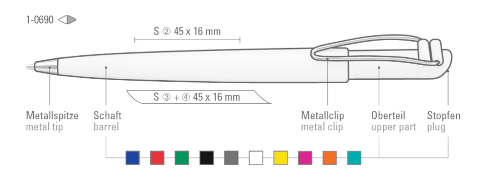 Druckkugelschreiber mit gedeckt glänzendem Gehäuse, vernickeltem Metallbiegeclip und Metallspitze. mehr