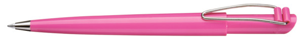 Druckkugelschreiber mit gedeckt glänzendem Gehäuse, vernickeltem Metallbiegeclip und Metallspitze.