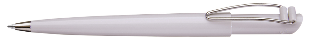 Druckkugelschreiber mit gedeckt glänzendem Gehäuse, vernickeltem Metallbiegeclip und Metallspitze.