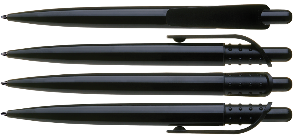 Druckkugelschreiber mit gedeckt glänzendem Gehäuse und großem Clip an genoppter Clipaufhängung. mehr