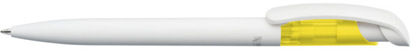 Druckkugelschreiber mit Gehäuse und Clip aus 100% nachwachsendem und kompostierbarem Material. Oberteil aus gefrostetem ABS Kunststoff.
