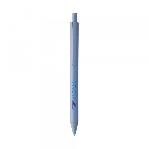Blauschreibender Kugelschreiber, hergestellt aus 50% PP und 50% Weizenstroh. Griff, Clip und Druckknopf sind aus demselben Material gefertigt und der gesamte Kugelschreiber ist stilvoll in einer Farbe ausgeführt. Teilweise biologisch abbaubar.