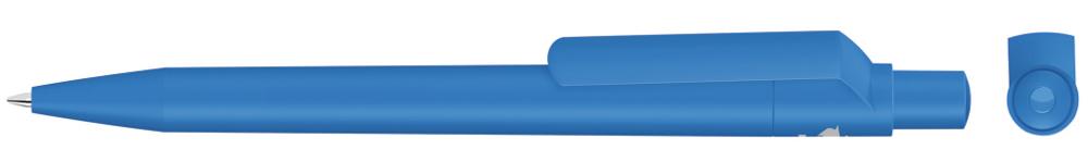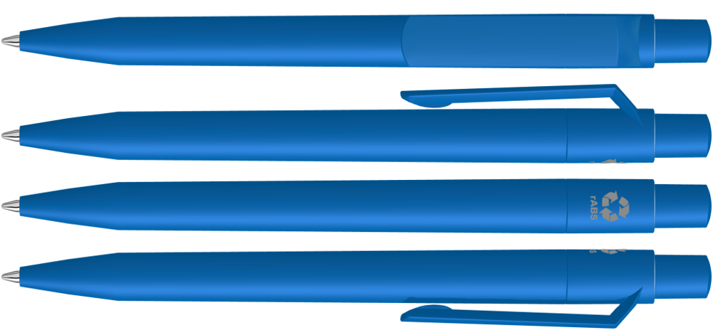 Druckkugelschreiber mit gedeckt mattem Gehäuse, Clip, Drücker und Stopfen aus recyceltem ABS-Kunststoff.