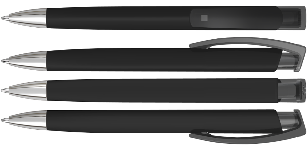 Druckkugelschreiber mit gedeckt mattem Dreikantgehäuse, transparent glänzendem Clip aus... mehr