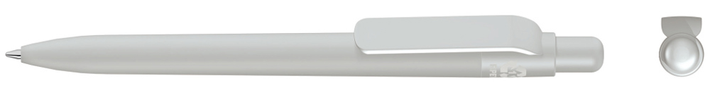 Druckkugelschreiber aus recyceltem PET-Material mit gummiertem Gehäuse und gedeckt mattem Clip, Drücker und Stopfen.