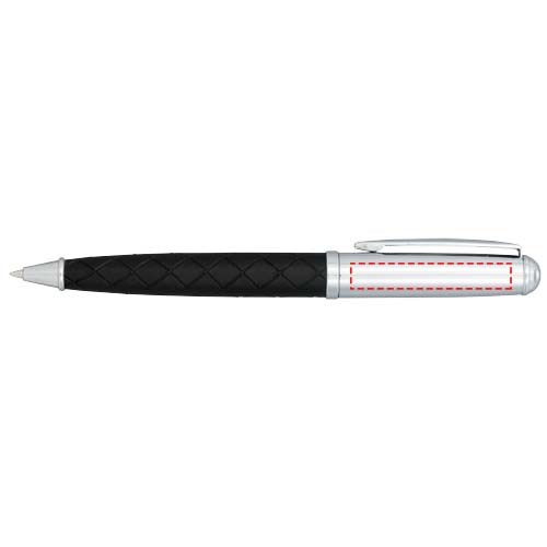 Kugelschreiber in exklusivem Design, das untere Gehäuse ist mit Leder in einem Kreuzlinienmuster umwickelt. Inklusive einer hochwertigen schwarzen Ersatzmine und verpackt in einer „LUXE“-Geschenkschachtel (16 x 4,5 x 2,5 cm).