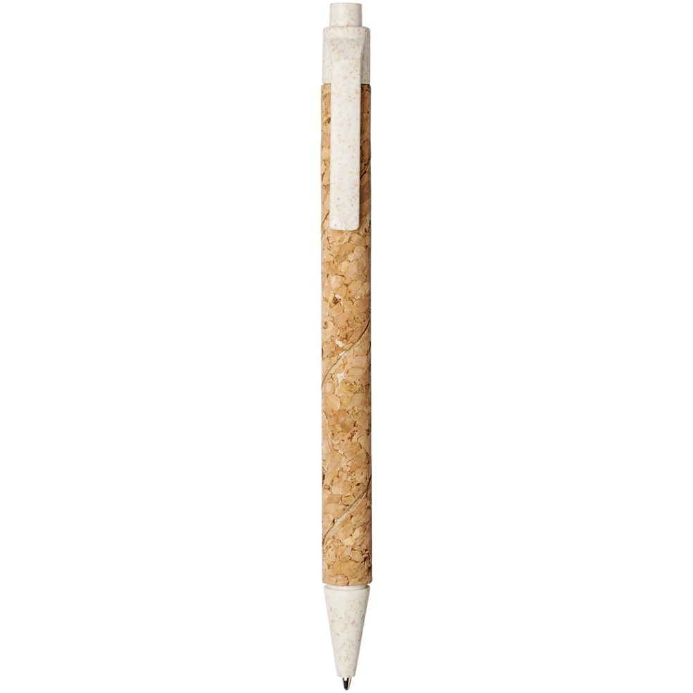 Umweltfreundlicher Kugelschreiber mit Klickmechanismus, Korkgriff und Weizenstrohverzierungen in verschiedenen Farben. Bei Weizenstroh handelt es sich um zurückgebliebene Stiele nach der Ernte von Weizenkörnern. Dadurch wird die Menge an Kunststoff reduziert und eine umweltfreundliche Alternative geschaffen. Die Farbe des Korkmaterials kann variieren.