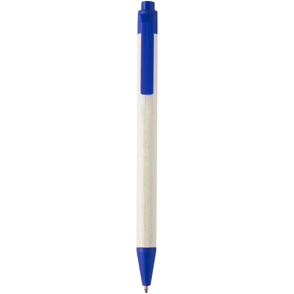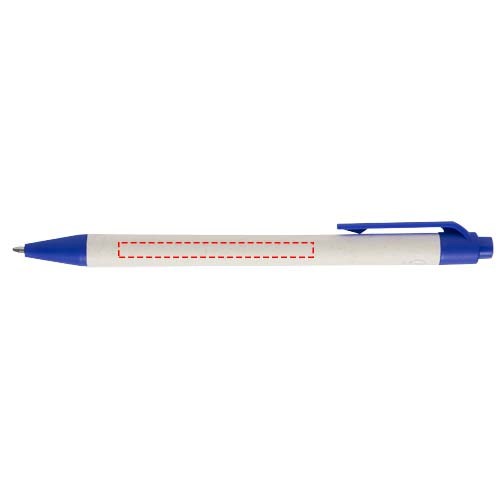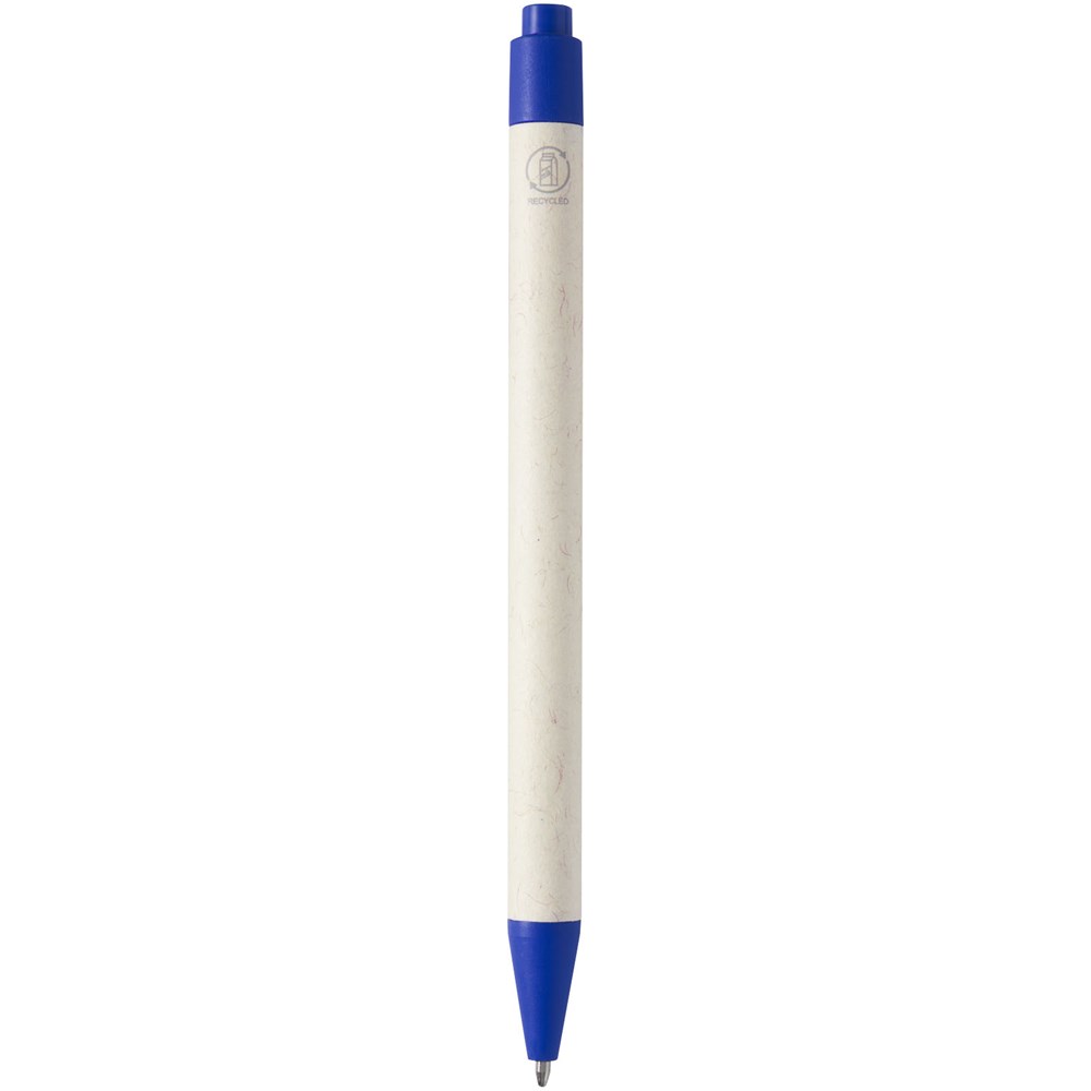 Kugelschreiber mit Druckmechanik und einem Schaft aus recycelten Milchtüten (bis zu 70 %). Der Druckknopf, der Clip und die Spitze sind aus PLA-Kunststoff gefertigt. Gebrauchte Milchtüten werden gesammelt, sortiert, verarbeitet und in Papier umgewandelt, sodass aus Abfall wirklich etwas Nützliches wird.