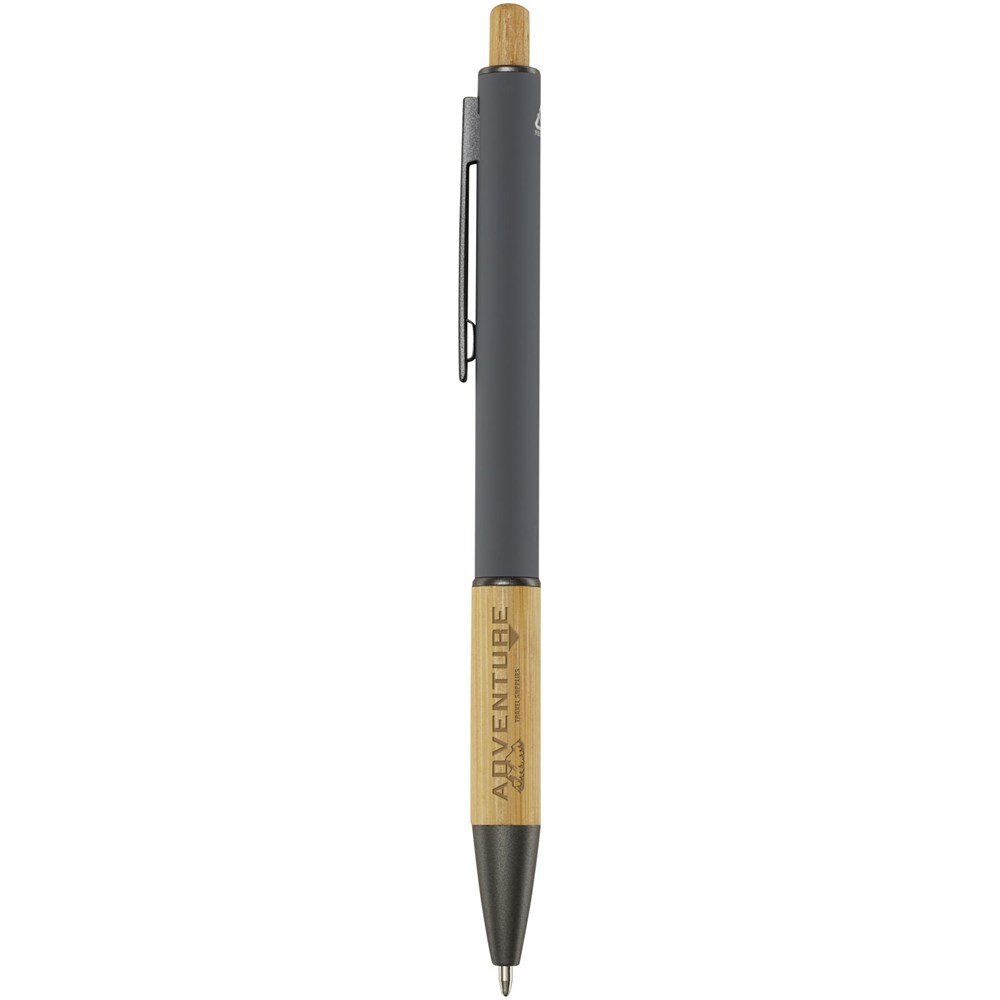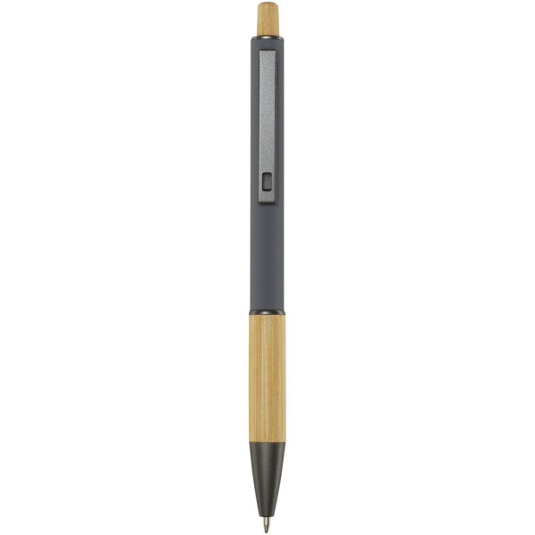 Der Darius Kugelschreiber wird aus recyceltem Aluminium hergestellt, was weniger Energie benötigt als die Herstellung von Aluminium aus Rohstoffen. Es reduziert außerdem die Abfallmenge auf Mülldeponien und trägt dazu bei, natürliche Ressourcen zu schonen und Treibhausgasemissionen zu reduzieren. Der Druckknopf und der untere Teil des Schafts sind aus Bambus gefertigt. Tintenfarbe: Schwarz. Schreiblänge: 800 Meter. Spitzengröße: 1,00 mm.