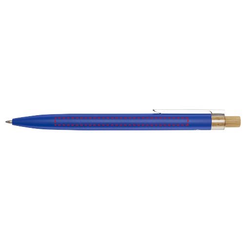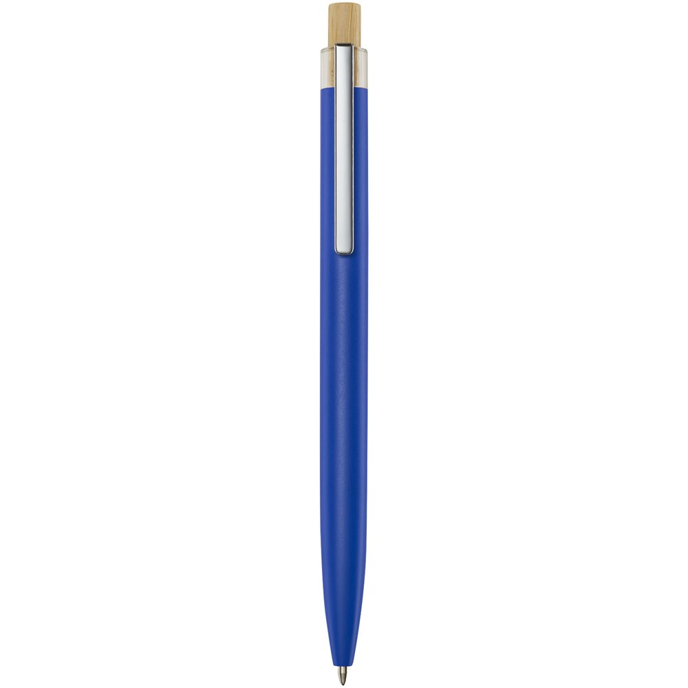 Der Nooshin Kugelschreiber wird aus recyceltem Aluminium hergestellt, was weniger Energie benötigt als die Herstellung von Aluminium aus Rohstoffen. Es reduziert außerdem die Abfallmenge auf Mülldeponien und trägt dazu bei, natürliche Ressourcen zu schonen und Treibhausgasemissionen zu reduzieren. Druckknopf ist aus Bambus gefertigt. Tintenfarbe: Schwarz. Schreiblänge: 800 Meter. Spitzengröße: 1,00 mm.