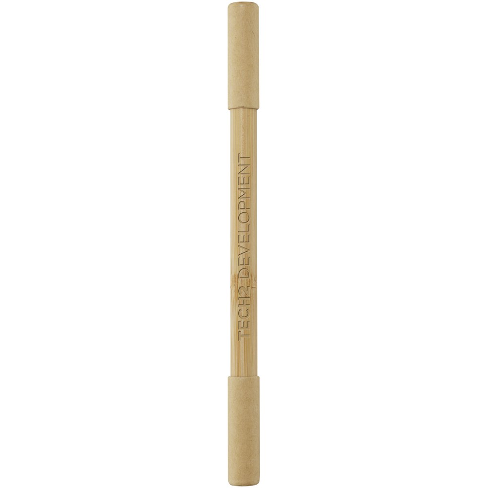 Der Samambu Bambus Duo-Stift hat zwei Köpfe: Einmal Kugelschreiber und einmal Graphitspitze. Für die Graphitseite sind keine Tintenpatronen oder Nachfüllminen erforderlich. Die schwarze Grafitspitze des Stiftes hinterlässt sichtbare Spuren, wenn sie mit der Schreibfläche in Kontakt kommt. Wenn Sie sich für einen Kugelschreiber aus Bambus entscheiden, treffen Sie eine nachhaltigere Wahl und fördern die Verwendung erneuerbarer Materialien. Der Kugelschreiber hat blaue Tinte, eine Spitze von 1,00 mm und eine Schreiblänge von 600 Metern. Schreiblänge des Kugelschreibers ohne Tinte: 1500 Meter.